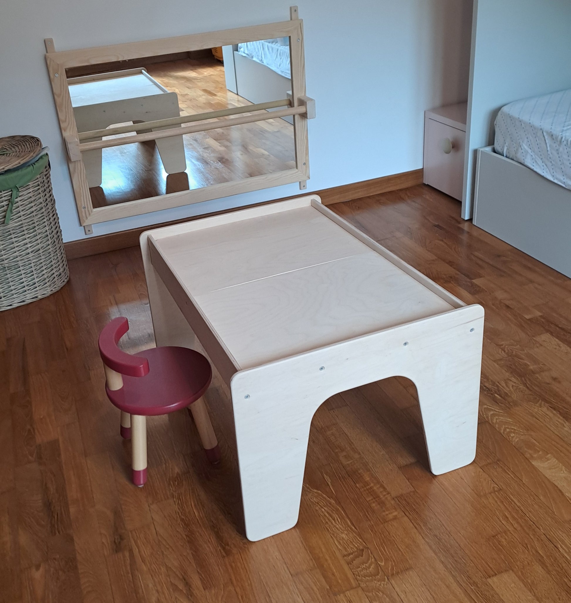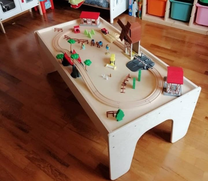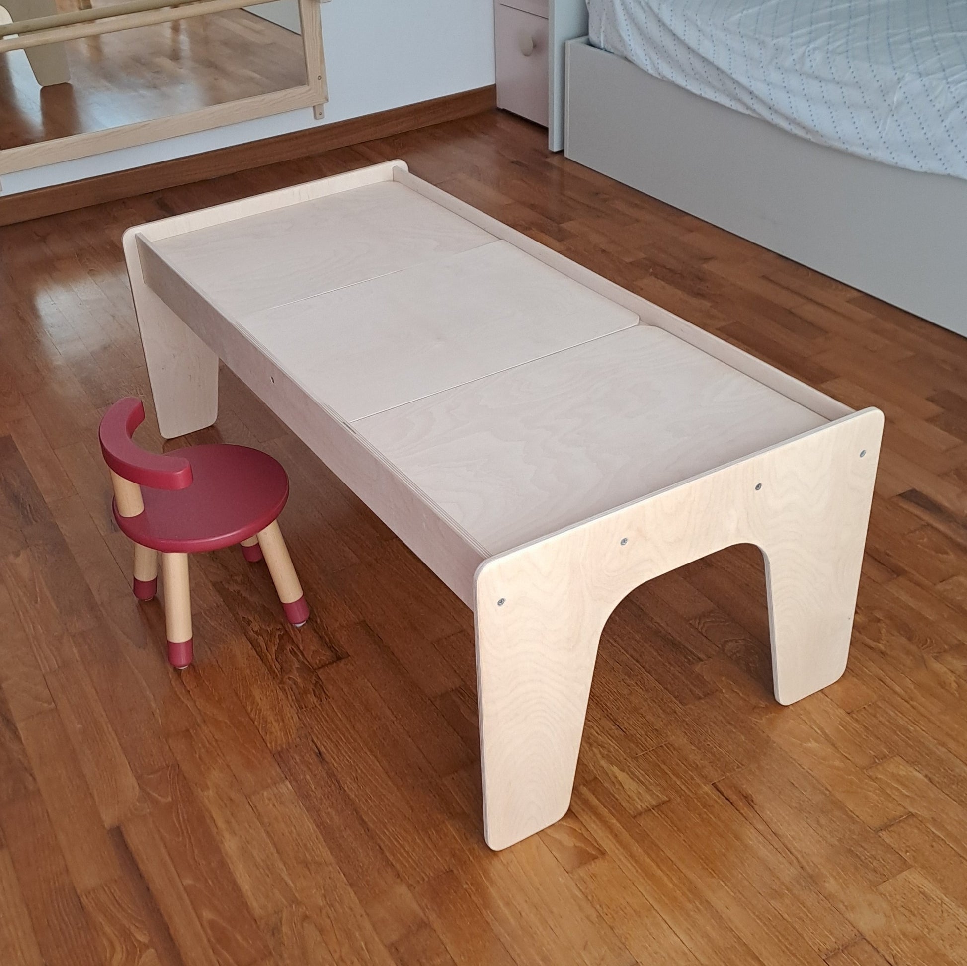 Tavolo semplice oppure con variante travasi, adatto a treni, costruzioni, pongo o quello che la fantasia vi suggerisce.